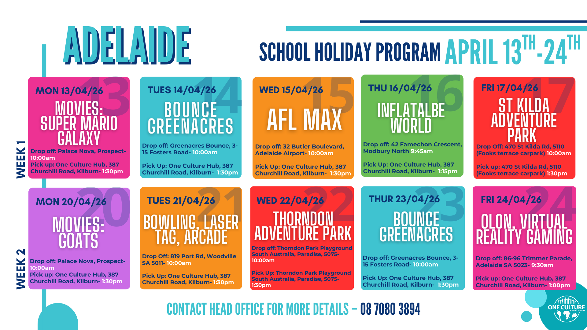One Culture’s Inclusive School Holiday Program runs during each school holiday throughout the year.